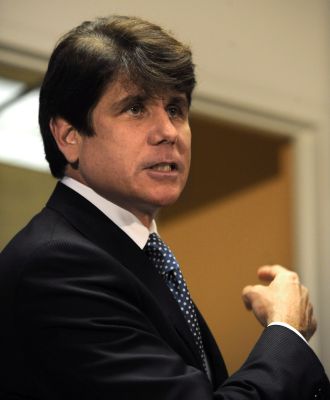 Illinois Governor Rod Blagojevich talks to the media about political fundraiser Antoin “Tony” Rezko’s guilty verdit in his trial Wednesday, June, 4, 2008 during a brief news conference in the Governor’s office at the James Thompson State building in Chicago. (AP Photo/Paul Beaty)